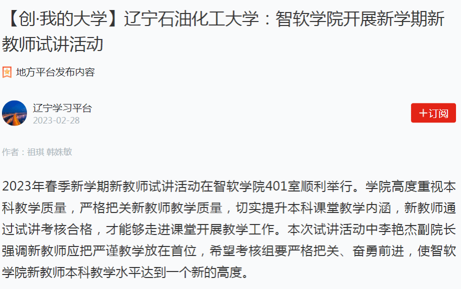 编者按:近日,学习强国辽宁学习平台、辽宁日报·北国号、人民日报客户端·人民号等媒体平台对我校智软学院开展新学期新教师试讲活动进行了宣传报道。现将相关报道转载如下: