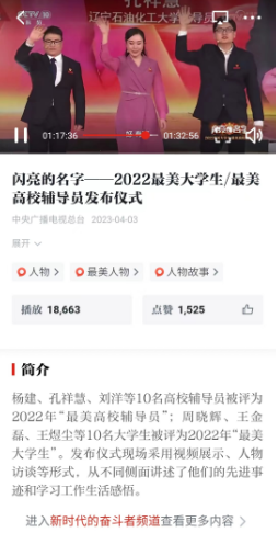 CCTV10:2022年“最美高校辅导员”“最美大学生”先进事迹发布