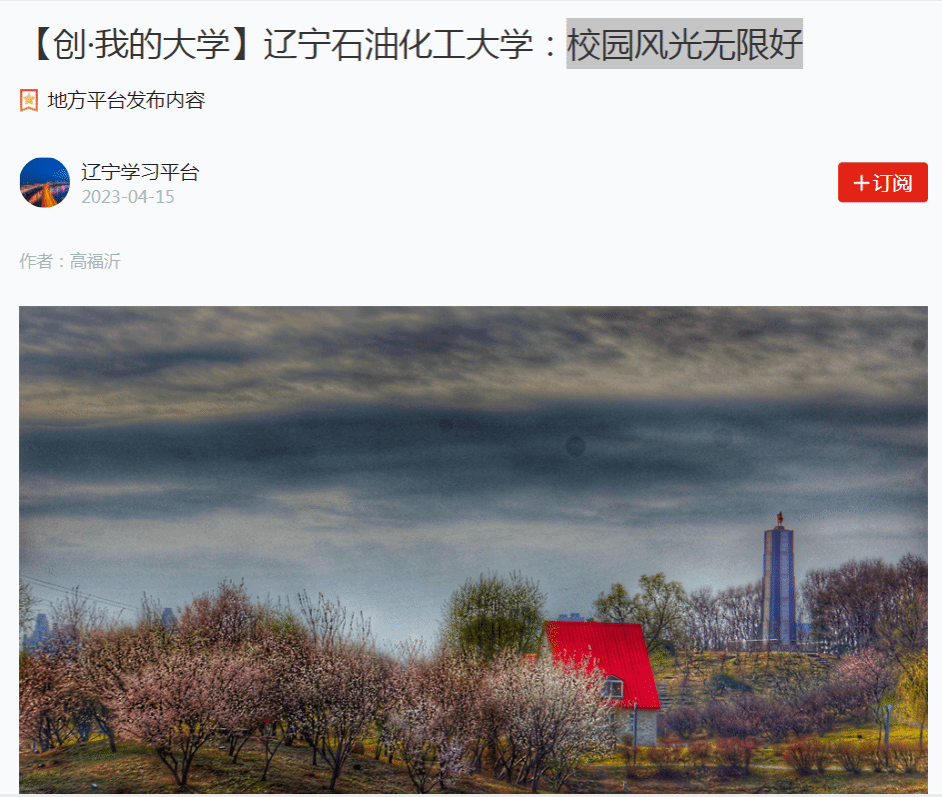 编者按:近日,学习强国辽宁学习平台对我校离退办选送的校园风景图集进行了宣传报道。现将相关报道转载如下: