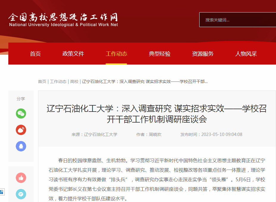 编者按:近日,全国高校思想政治工作网、辽宁日报·北国号等媒体平台对学校党委书记郭长义在第七会议室主持召开干部工作机制调研座谈会,同题共答,萃聚集体智慧谋实招求实效,着力提升学校干部队伍建设水平进行了宣传报道。现将相关报道转载如下: