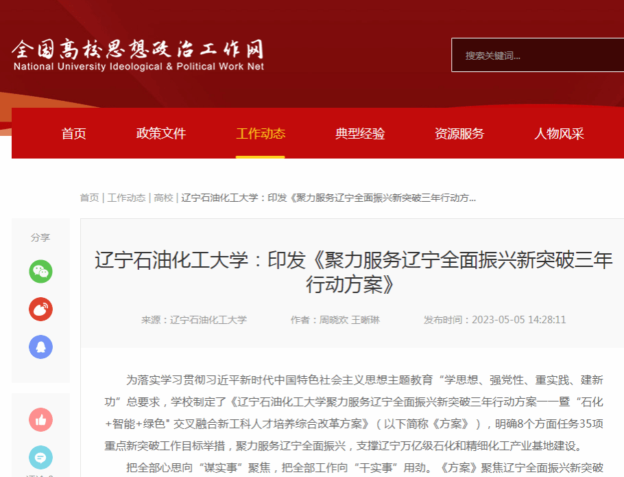 编者按:近日,全国高校思想政治工作网、辽宁日报·北国号等媒体平台对我校为落实学习贯彻习近平新时代中国特色社会主义思想主题教育“学思想、强党性、重实践、建新功”总要求,制定了《国产亚洲综合一区二区三区_亚洲欧美日韩中文天堂_尤物在线观看视频不卡无码_国产最新精品亚洲2025不卡_亚洲成Av人在线观看片水蜜桃聚力服务辽宁全面振兴新突破三年行动方案一一暨“石化+智能+绿色"交叉融合新工科人才培养综合改革方案》,明确8个方面任务35项重点新突破工作目标举措,聚力服务辽宁全面振兴,支撑辽宁万亿级石化和精细化工产业基地建设进行了宣传报道。现将相关报道转载如下: