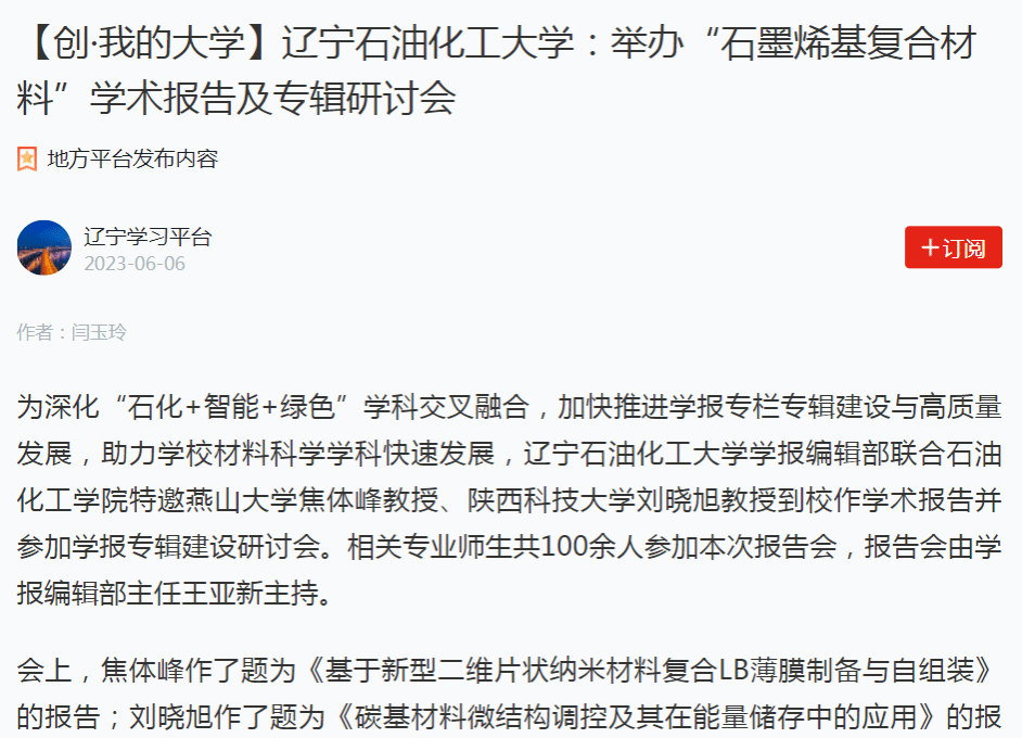 编者按:近日,学习强国辽宁学习平台、辽宁日报·北国号、人民日报客户端·人民号等媒体平台对我校学报编辑部联合石油化工学院邀请燕山大学焦体峰教授、陕西科技大学刘晓旭教授到校作学术报告并参加学报专辑建设研讨会进行了宣传报道。现将相关报道转载如下: