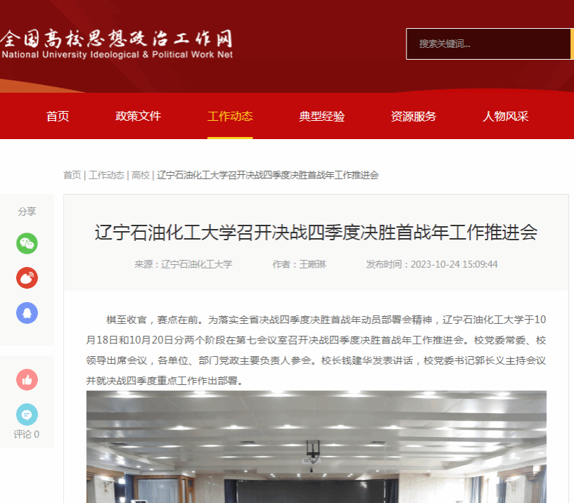 编者按:近日,全国高校思想政治工作网、辽宁日报·辽望号、人民日报客户端·人民号等媒体平台对我校落实全省决战四季度决胜首战年动员部署会精神,于10月18日和10月20日分两个阶段在第七会议室召开决战四季度决胜首战年工作推进会进行了宣传报道。现将相关报道转载如下: