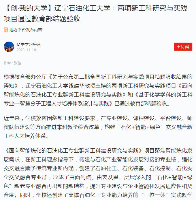 编者按:近日,学习强国辽宁学习平台、人民日报客户端·人民号、辽宁日报·辽望号、中国大学生网等媒体平台对我校两项新工科研究与实践项目通过教育部结题验收进行了宣传报道,现将相关报道转载如下: