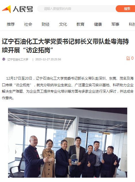 编者按:12月17日至20日,校党委书记郭长义带队赴深圳、东莞、茂名及海口持续“访企拓岗”,就充分吸纳毕业生就业、广泛建立实习实训基地、科研助力企业解决生产难题、为企业员工提供专业化培训等方面与多家企业进行深入探讨,并达成合作意向。中国大学生网、辽宁日报·辽望号、人民日报客户端·人民号对此进行了宣传报道。现将相关报道转载如下: