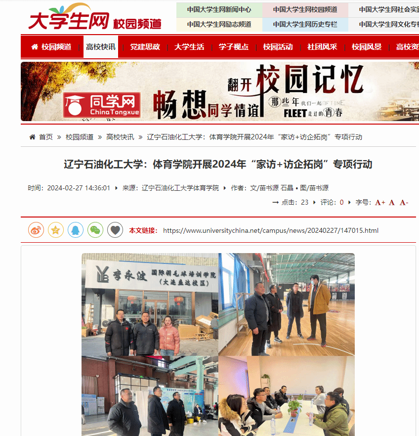 编者按:近日,中国大学生网对我校体育学院开展2024年“家访+访企拓岗”专项行动进行了宣传报道。现将相关报道转载如下: