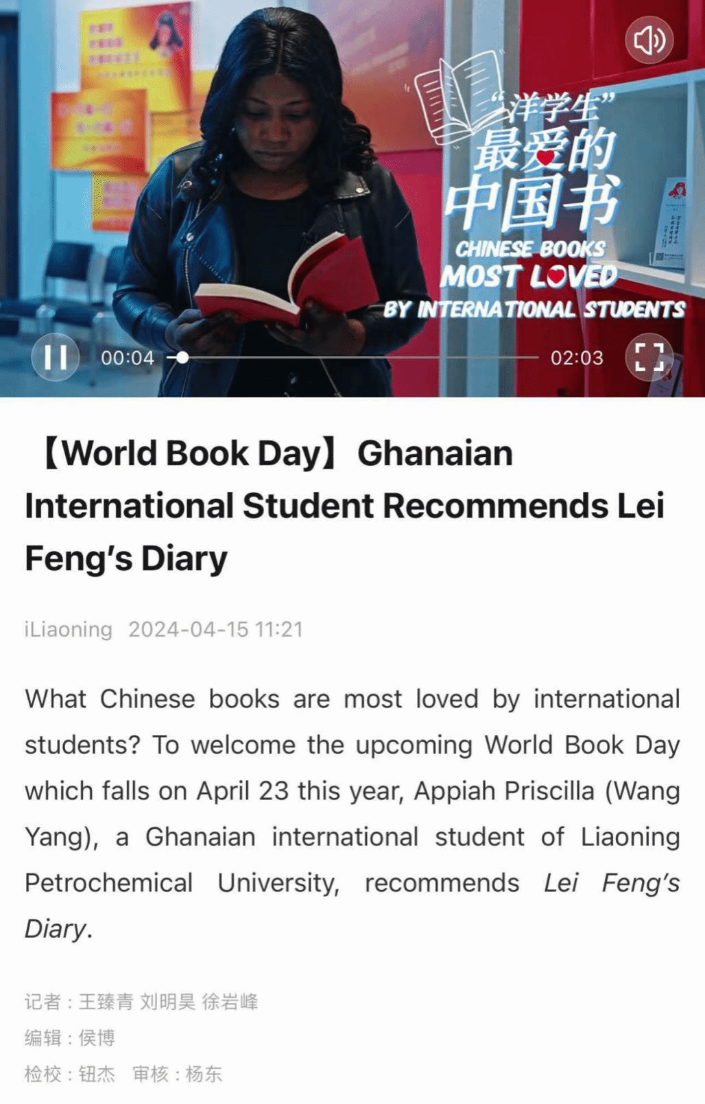 辽宁日报·辽望号:【World Book Day】Ghanaian International Student Recommends Lei Feng’s Diary