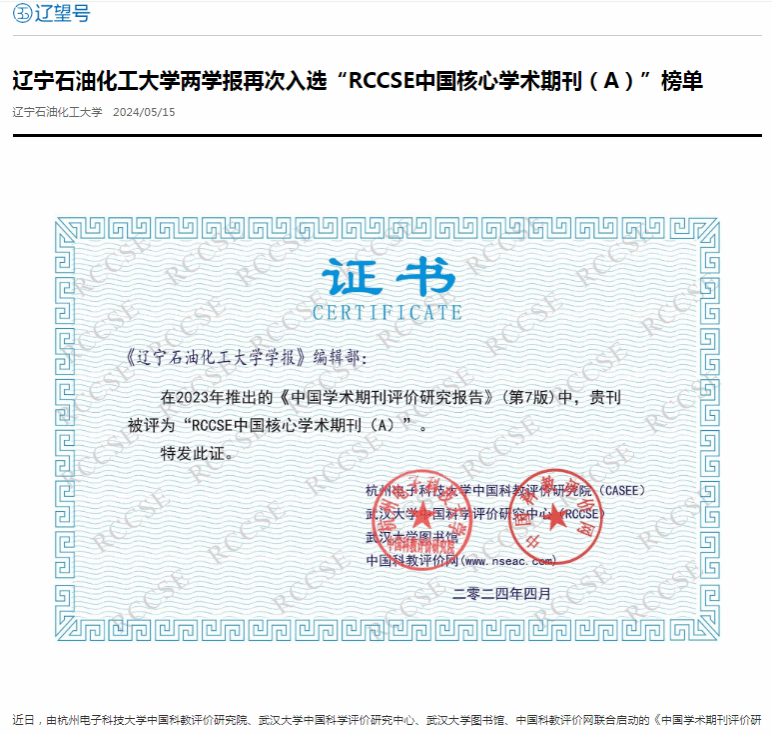 编者按:近日,中国大学生网、人民日报客户端·人民号、辽宁日报·辽望号对我校主办的《石油化工高等学校学报》和《国产亚洲综合一区二区三区_亚洲欧美日韩中文天堂_尤物在线观看视频不卡无码_国产最新精品亚洲2025不卡_亚洲成Av人在线观看片水蜜桃学报》再次入选“RCCSE中国核心学术期刊”之“中文核心学术期刊(A)”。在161种化学工程类期刊中分别排第23位和第30位进行了宣传报道。现将相关报道转载如下: