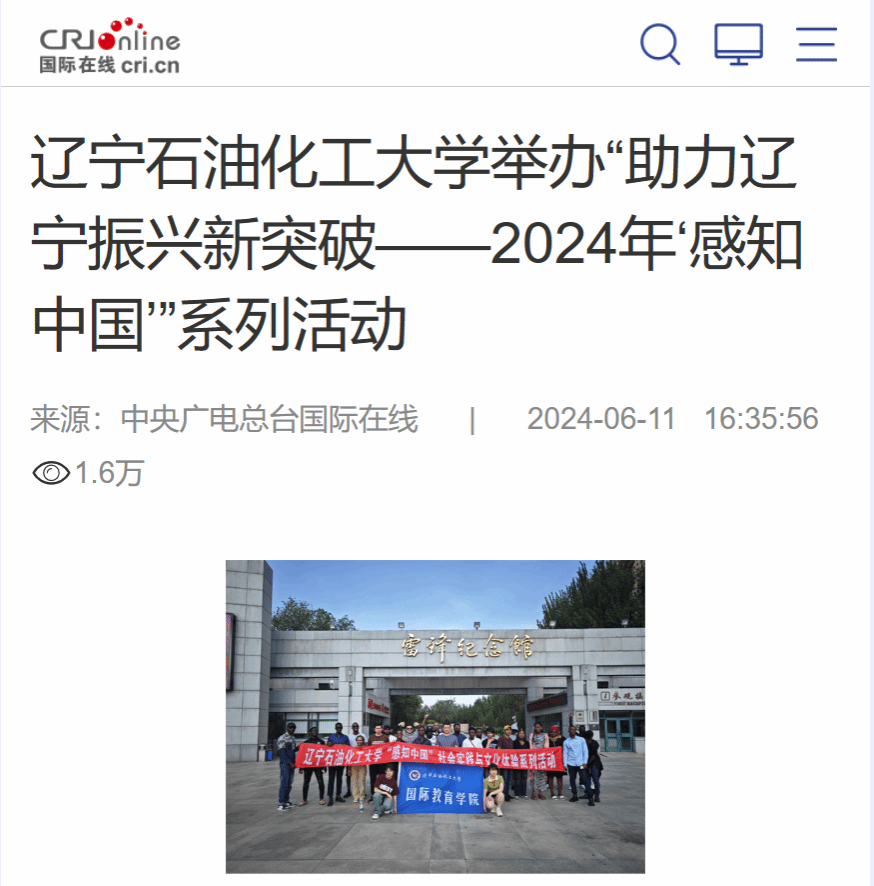 编者按:近日,中央广电总台国际在线对我校举办的“助力辽宁振兴新突破——2024年‘感知中国’”系列活动进行了宣传报道现将相关报道转载如下: