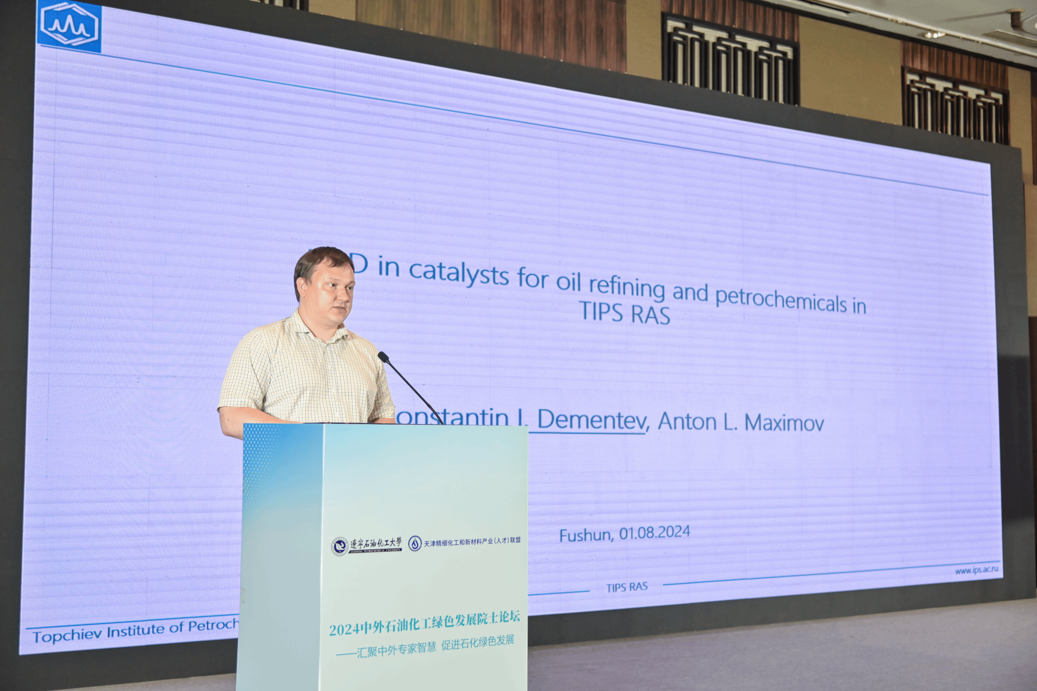 俄罗斯科学院石油化学合成研究所副所长德门季耶夫博士作了题为《俄罗斯科学院炼油和石化催化剂的研发进展》的主旨报告,介绍俄罗斯科学院的科学研究及院、校、企合作现状,并详细论述了多种新型催化剂的机理及工业化应用情况。